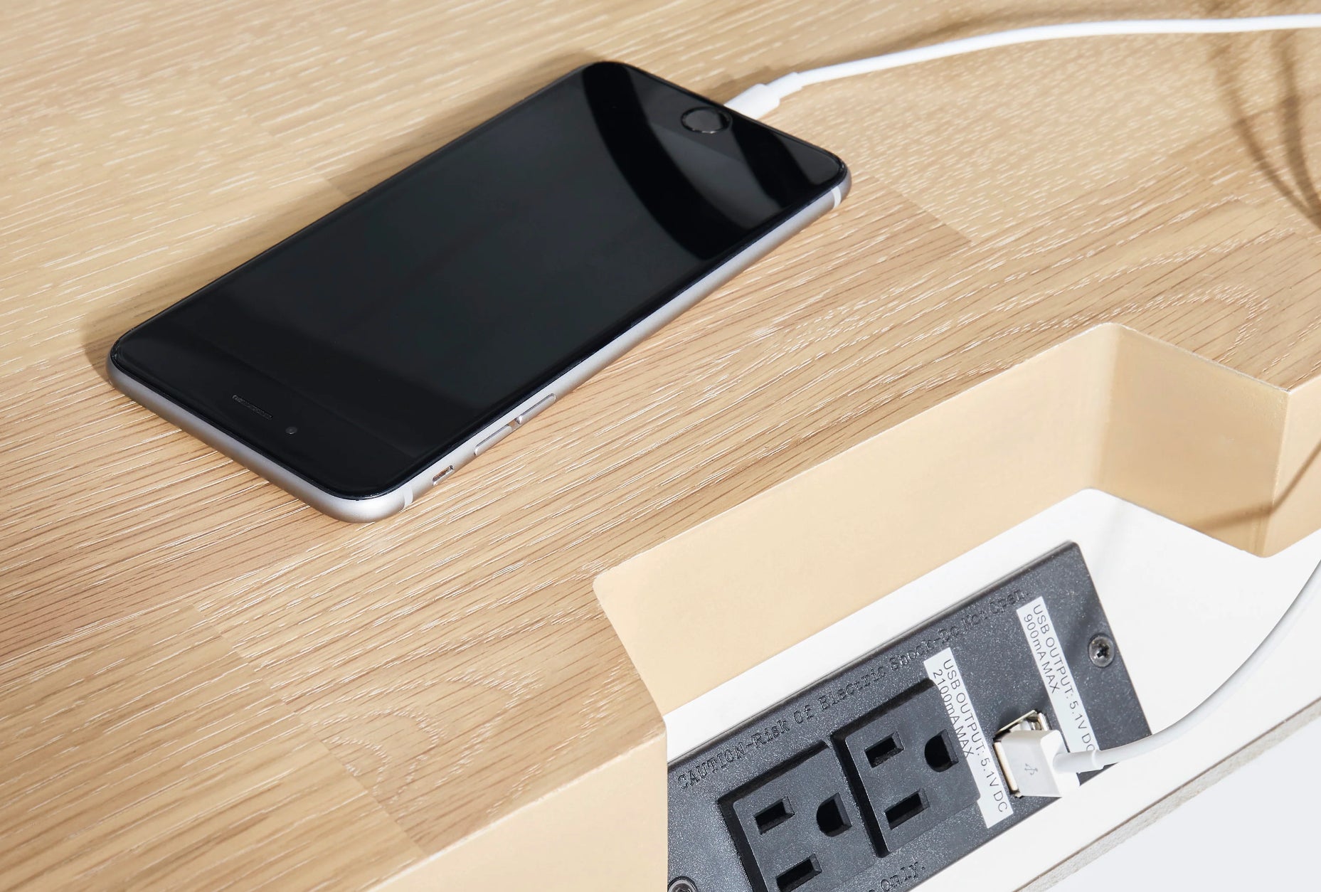 - Nightstand with 3 drawers, USB charging ports, and power supply